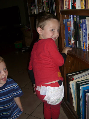 Slade came walking in today like this, with Jason's glasses on and this shirt tucked into his jammies. He proclaimed "I'm a Nerd!" I guess Steve Urkle would be proud.